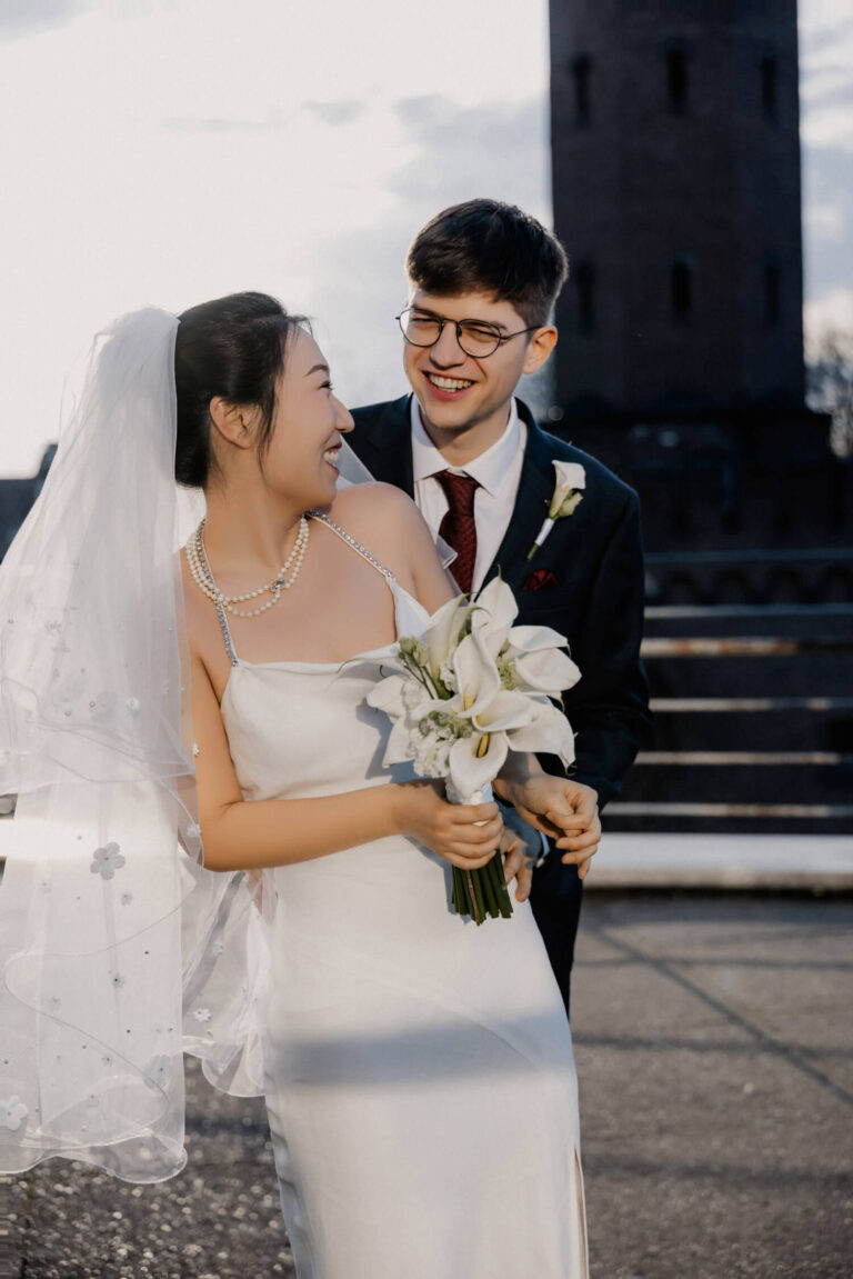 Am Nachmittag zog es uns zum Medienhafen Düsseldorf, wo wir weitere zauberhafte Brautpaarfotos machten. Die moderne Architektur und das urbane Flair dieser Location boten die perfekte Kulisse für unvergessliche Hochzeitsbilder. Als Hochzeitsfotograf im Medienhafen Düsseldorf schätze ich besonders die einzigartige Atmosphäre, die ich in authentischen und emotionalen Aufnahmen einfangen kann.